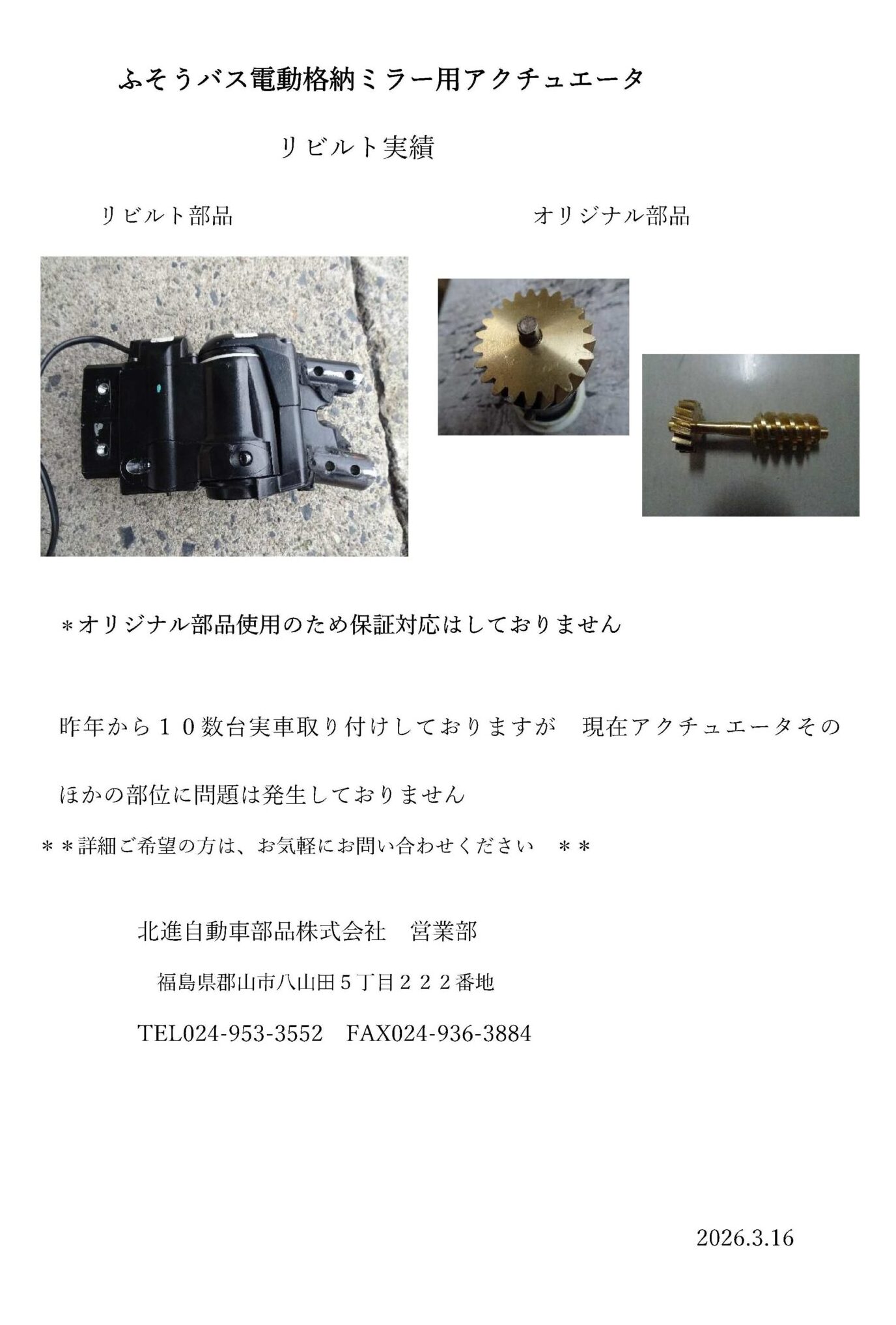ふそうバス電動格納ドアミラー用アクチュエータ 実車への取り付け進んでいます