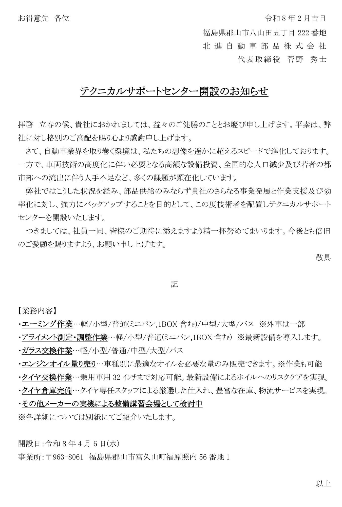 2026年4月6日(月)にテクニカルサポートセンターをオープンします。